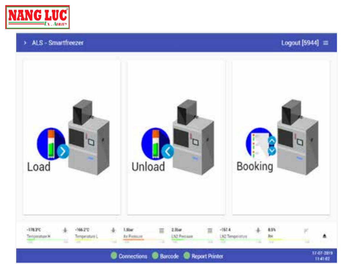Trong quá trình đông lạnh, cửa tủ bị khóa an toàn, ngăn ngừa việc thêm túi không được ghi nhận vào lô đang xử lý. Giao diện điều khiển thông minh với màn hình cảm ứng màu 12 inch cùng hệ thống điều khiển trực quan giúp thao tác nhanh chóng và tiện lợi.
