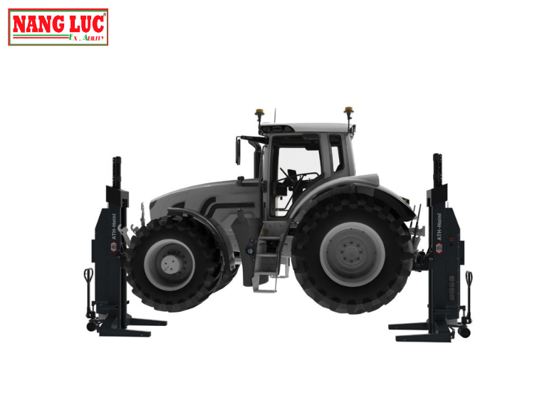 Các cột nâng có chiều cao tổng thể 2.650 mm, bề rộng mỗi cột 1.145 mm và khả năng điều chỉnh chiều rộng giá đỡ bánh xe. Thiết kế này giúp phù hợp với nhiều loại bánh xe và xe tải khác nhau. Bộ bánh xe di động và đầu gắn xe nâng tích hợp giúp thay đổi vị trí nhanh chóng, dễ dàng bố trí lại hệ thống theo nhu cầu sử dụng thực tế.