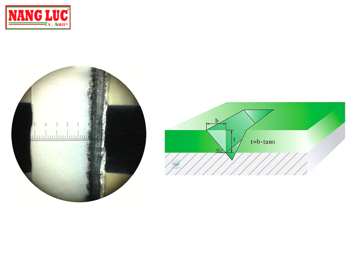 Sau khi thực hiện thao tác cắt, người sử dụng sẽ dùng kính hiển vi tích hợp trong máy để quan sát trực tiếp đường cắt. Độ dày của lớp phủ được xác định thông qua công thức hình học, dựa vào chiều dài chiếu trên mặt nghiêng (b) và góc cắt đã được thiết kế chuẩn xác (α).