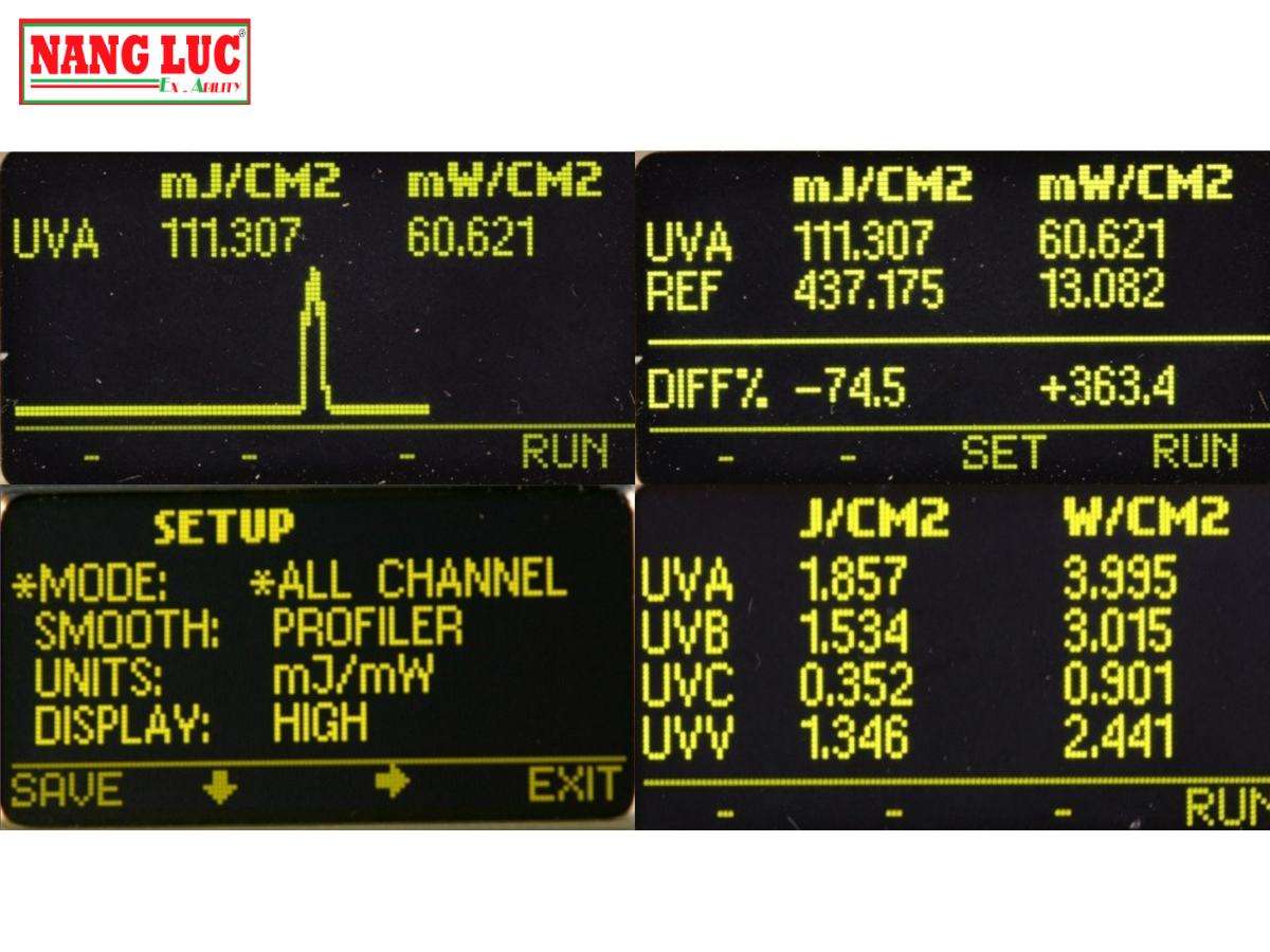Nhờ khả năng đo đa phổ này, người dùng có thể xác định loại đèn UV đang sử dụng như đèn thủy ngân, thủy ngân – sắt hoặc thủy ngân – gallium.