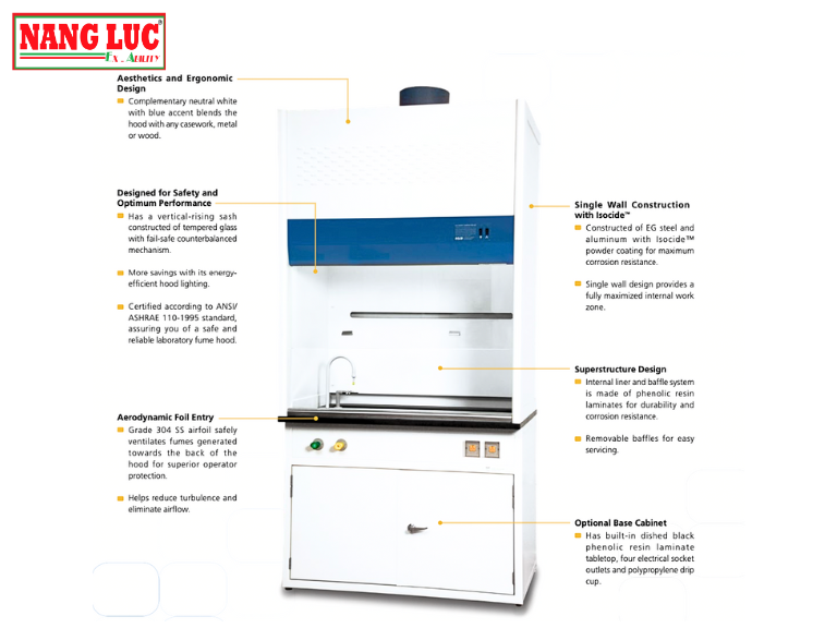 - Tuân thủ nghiêm ngặt tiêu chuẩn quốc tế về an toàn phòng thí nghiệm.