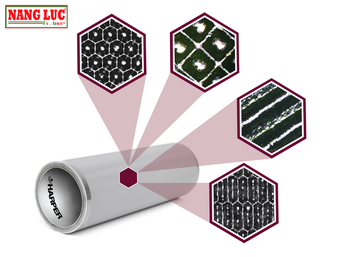 Lớp phủ LaserKote™ laser-hard tạo bề mặt cứng, chống mài mòn và chống ăn mòn cao, phù hợp cho môi trường sản xuất liên tục. So với trục chrome và ceramic thông thường, LaserKote™ duy trì hình dạng ô chứa (cell geometry) ổn định trong thời gian dài, giảm tần suất bảo trì và thay thế.