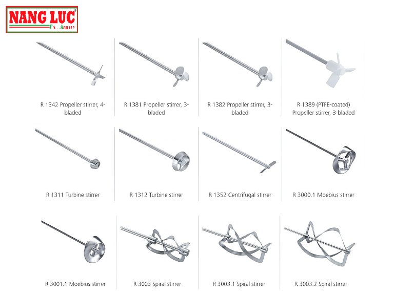 Ngoài phụ kiện đi kèm, người dùng có thể lựa chọn thêm các loại cánh khuấy chuyên biệt để phục vụ các mục đích khuấy khác nhau: