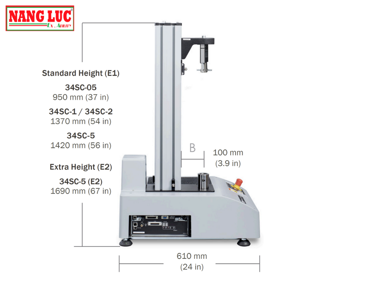 | Không gian thử nghiệm dọc (A) | mm | 1242 (E1), 1744 (E2) | 1242 (E1), 1744 (E2) | 1198 (E1), 1700 (E2) | 1198 (E1), 1700 (E2) |