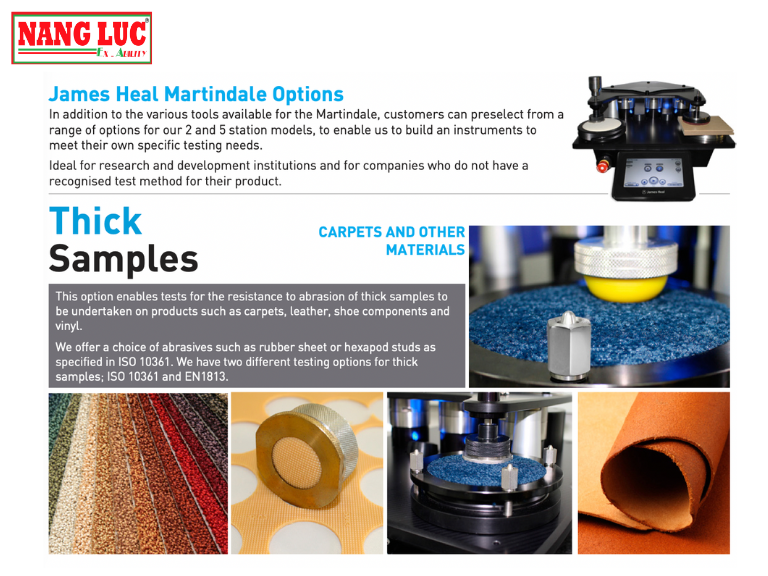 Máy Kiểm Tra Độ Mài Mòn James Heal DurAbrasion có khả năng thực hiện nhiều phương pháp kiểm tra khác nhau trên nhiều loại vật liệu, bao gồm: