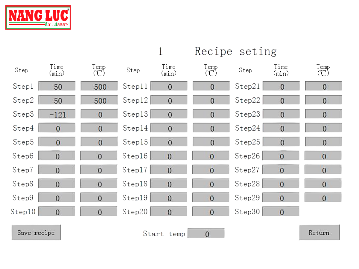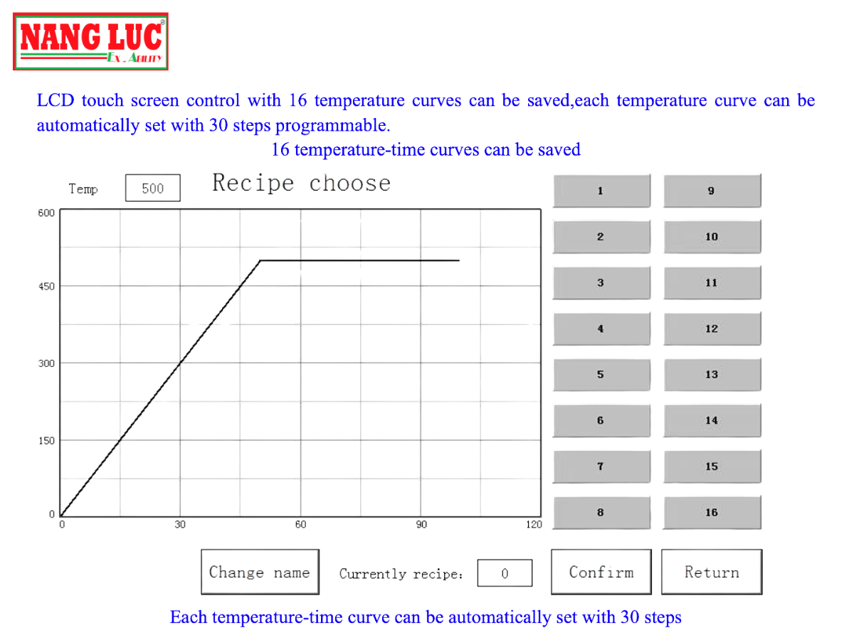 - Mỗi đường cong có thể thiết lập tối đa 30 bước gia nhiệt, giữ nhiệt và làm nguội