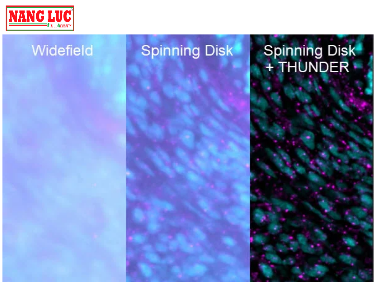 Sự kết hợp giữa công nghệ khử nhiễu nền THUNDER và quay đĩa confocal giúp loại bỏ ánh sáng ngoài tiêu điểm, tạo ra hình ảnh có độ tương phản và phân giải vượt trội. Nhờ đó, người dùng có thể quan sát rõ hơn cấu trúc 3D của tế bào và mô phức tạp, mở rộng khả năng phân tích trong sinh học phát triển và phân tử.