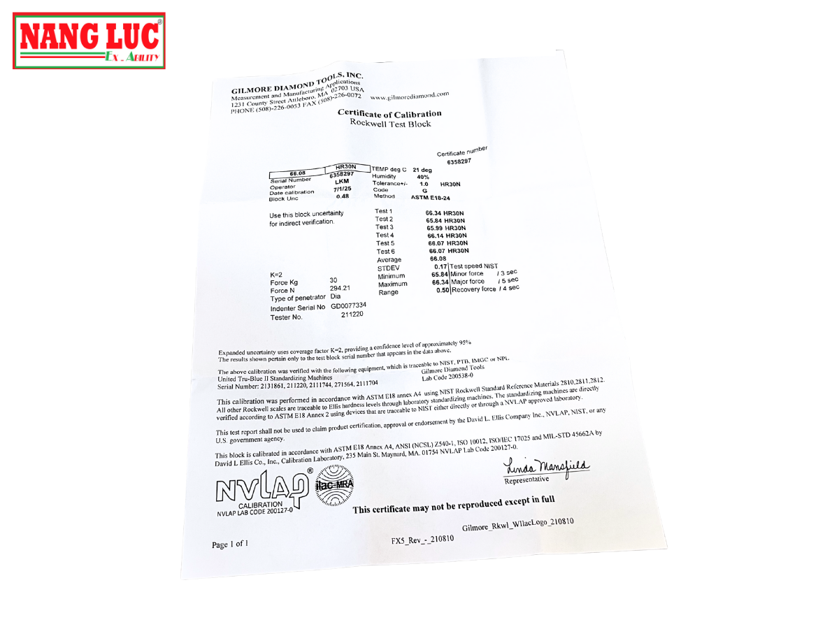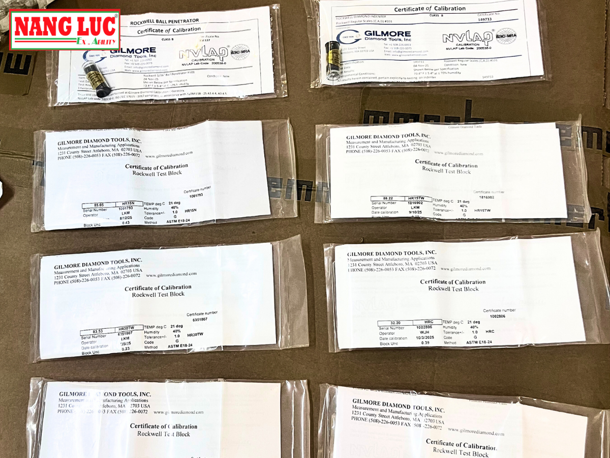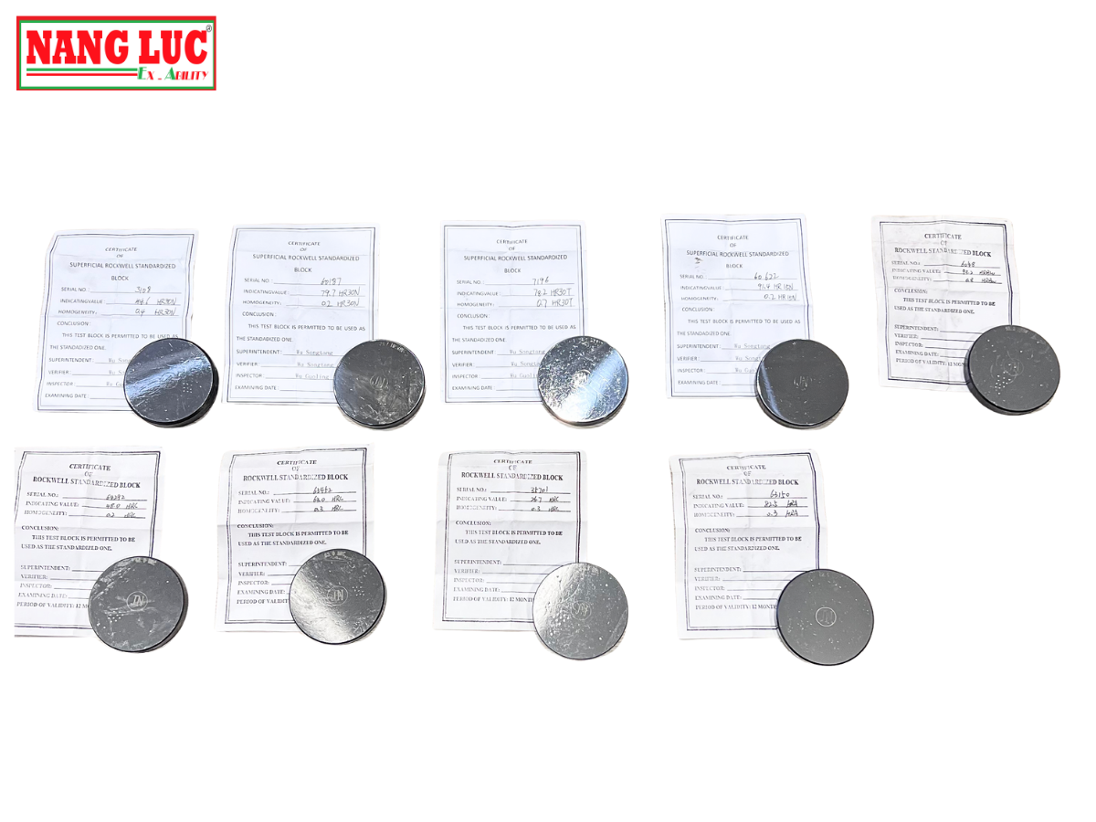 - Block chuẩn Rockwell với giá trị và thang đo đặt riêng