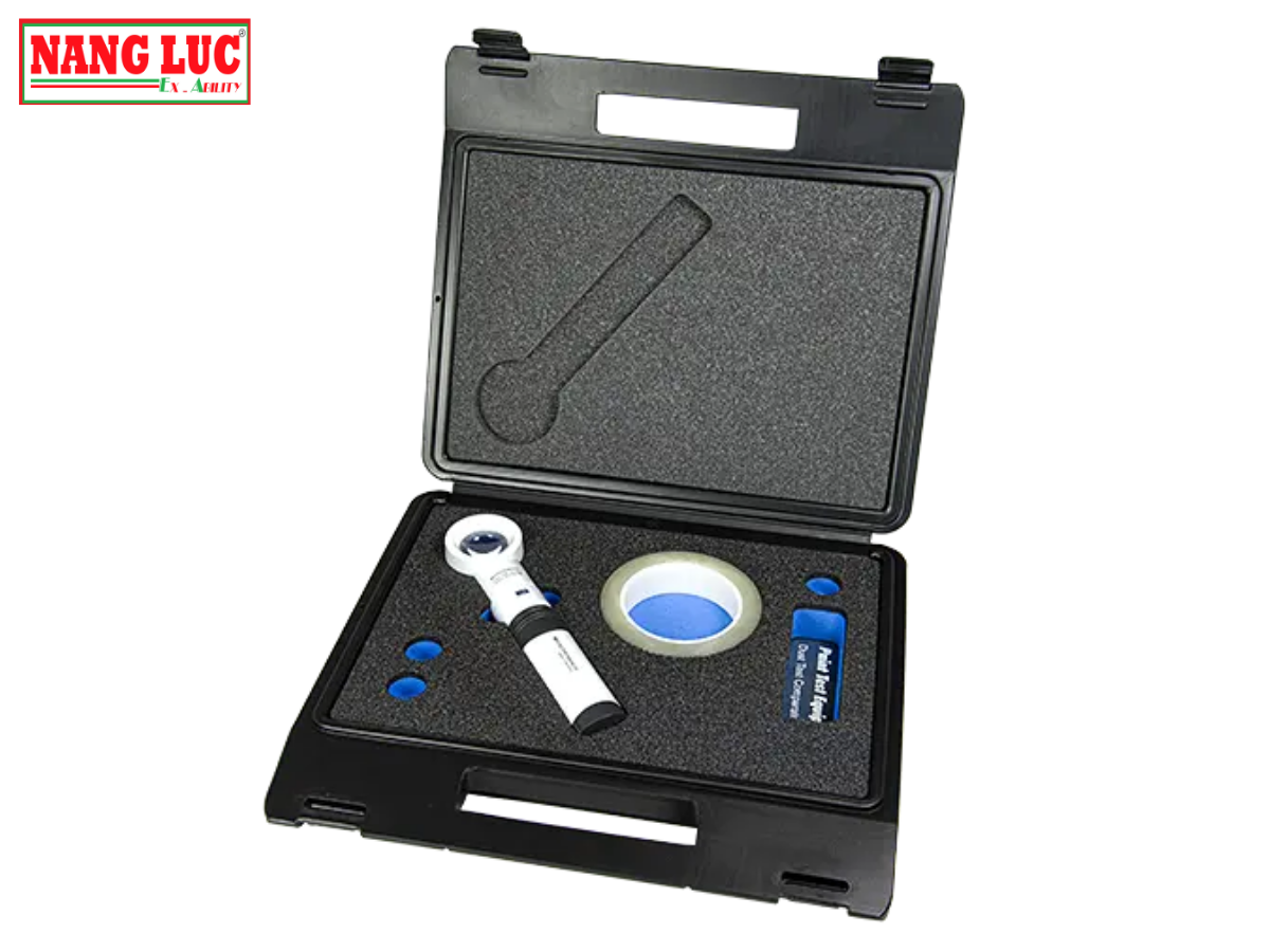 Dust Tape Test P4001 được cung cấp trong hộp đựng công nghiệp chắc chắn, bao gồm băng dán Dust Test Tape dài 60m, Dust Test Comparator và kính lúp có đèn phóng đại X10. Thiết bị tuân thủ tiêu chuẩn ISO 8502-3, đảm bảo độ tin cậy trong quá trình kiểm định.